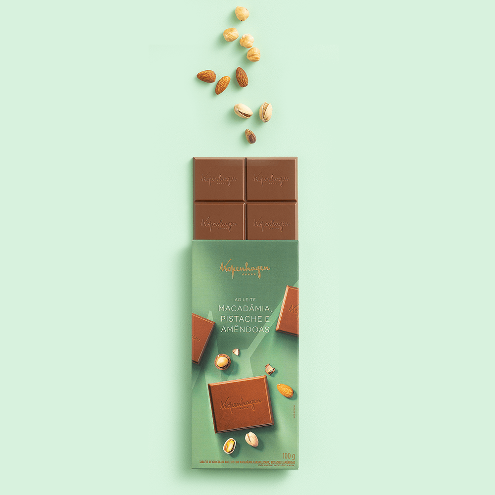 Tablete Ao Leite Com Macadâmia, Pistache E Amêndoas 100G